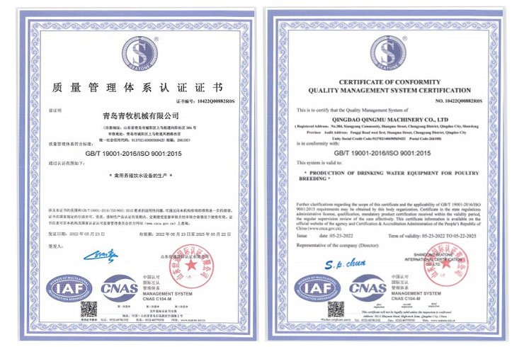 青岛青牧机械有限公司成立于2013年,是一家集研发、生产、销售、服务于一体的综合性企业。公司专注于家禽饮水设备的研发和生产,拥有专业的研发团队、先进的加工设备以及自动化组装线,力求打造“简单、高效、环?!钡母叨饲萦靡低场?/p>